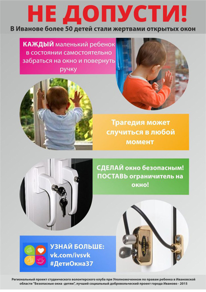 В этот же день команда уполномоченного по правам ребенка в Ивановской области Татьяны Океанской распространила в социальных сетях памятку о том, как избежать несчастья. Силами волонтеров, напомним, каждый год в регионе проводят профилактические акции «Безопасные окна - детям».