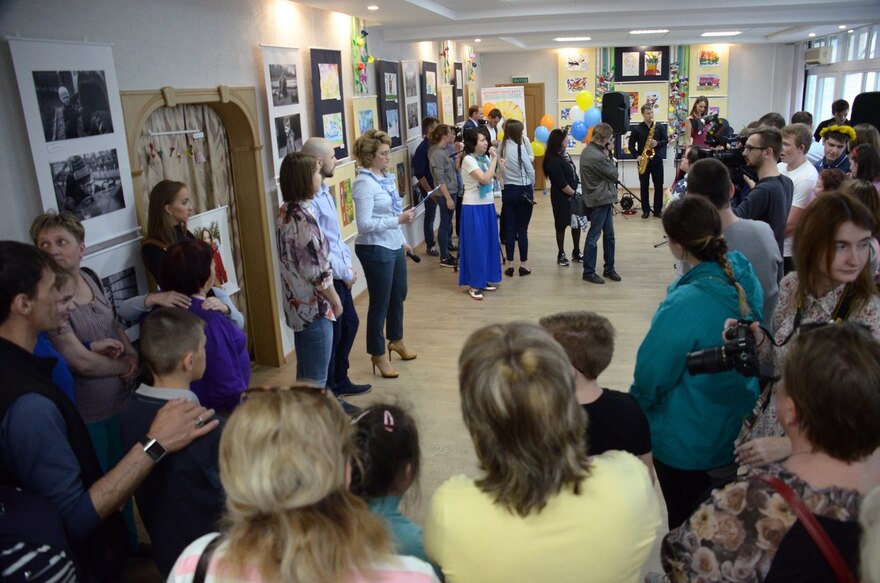 Наставниками проекта (и в этом его уникальность) стали друзья «Солнечного круга» из общества МИГ111 (Молодые ивановские глухие), фотографы Андрей Богатырев и Алена Барабанова, а также художник, мама особого мальчика Татьяна Хабарова – именно она генерировала идеи и помогала учителям и ученикам найти общий язык. Кроме рисунков, на выставке представлены и снимки, рассказывающие о процессе создания той или иной работы и об ее авторе. При этом портреты детей вписаны в городскую среду: мы видим, как свободно и спокойно чувствует себя особый ребенок среди привычных ивановских пейзажей. Вот он гуляет во дворе дома-«подковы», вот гоняет голубей на площади Революции, вот «штурмует» постамент памятника Фрунзе… И мы замечаем: город и горожане действительно понемногу становятся дружелюбнее.