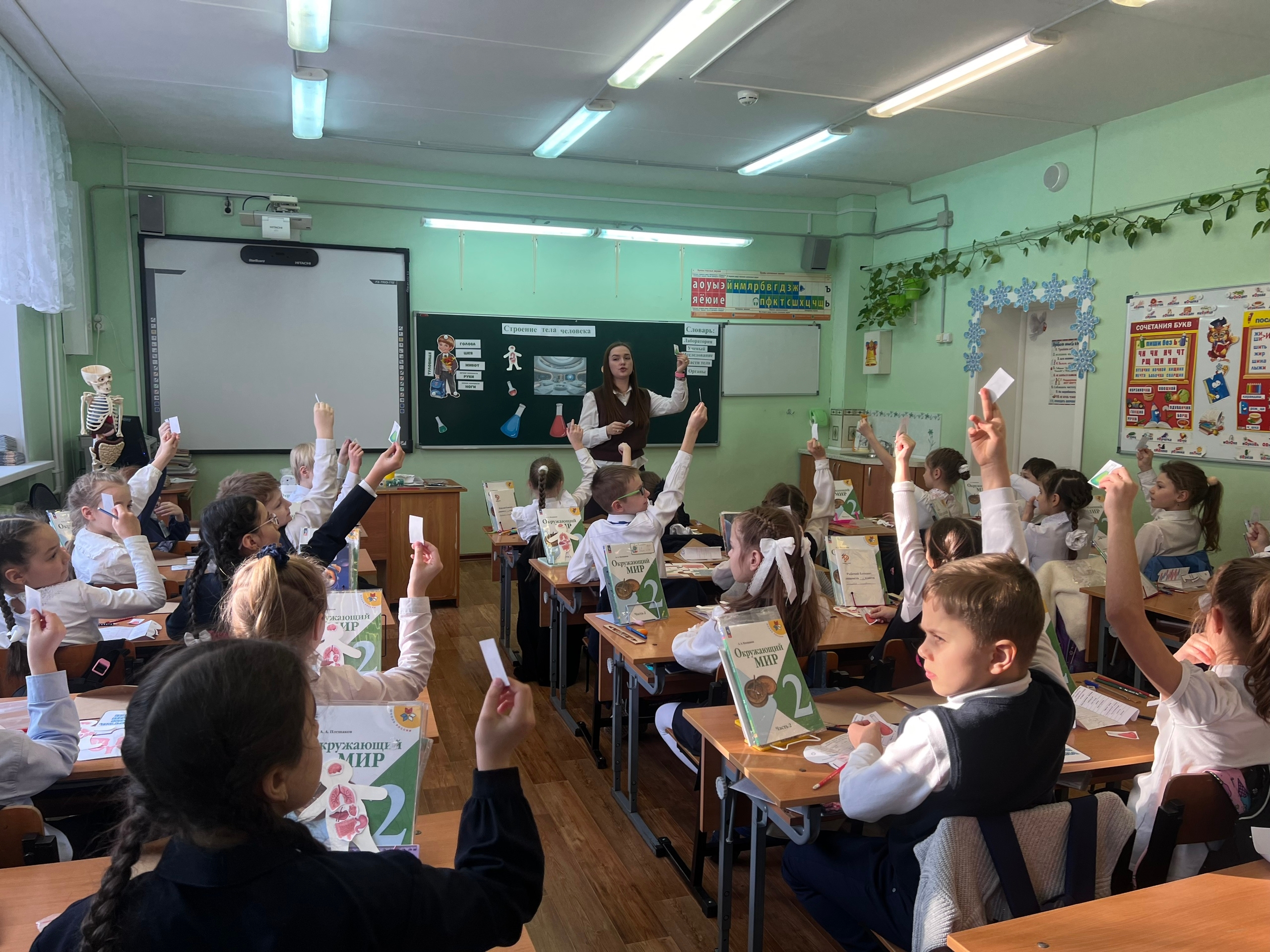 Молодая учительница преподает у второклассников. Признается: класс сложный. Всего 25 человек, больше мальчиков. Много ребят из многодетных семей, где не всегда есть возможность контролировать качество выполнения домашних заданий. Есть ученики, чьи родители дома говорят на другом языке, поэтому им сложнее осваивать программу по русскому языку и литературе. «Есть тихие ребята, а есть «звезды». Вот спросите любого старшеклассника, знают ли они, кто такая Маша из второго «А», и каждый ответит, что знает». Действительно, девочка встретила нас в коридоре и рассказала все, что случилось за перемену, не забыв «сдать» своих товарищей.