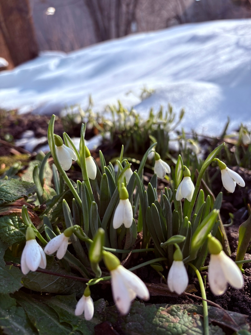 Первоцветы распустились и в саду акклиматизации южных растений, расположенном между улицами Советской и Пушкина. Полюбоваться подснежниками и крокусами я пришла в день неожиданного снегопада, но тем интереснее получилась прогулка в компании агронома Елены Борисовой.