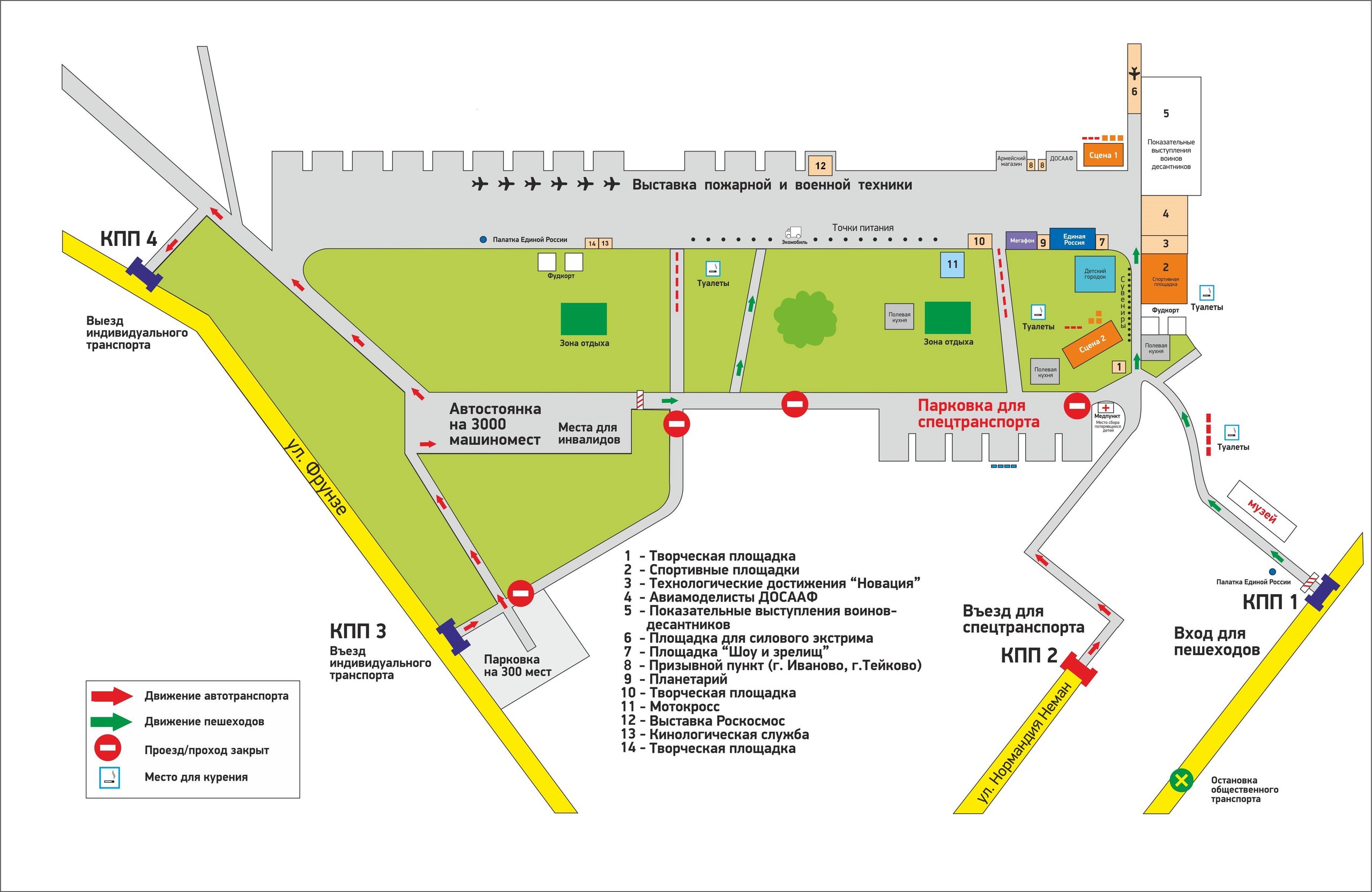 Схема расположения площадок военно-патриотического праздника «Открытое небо» - 2016