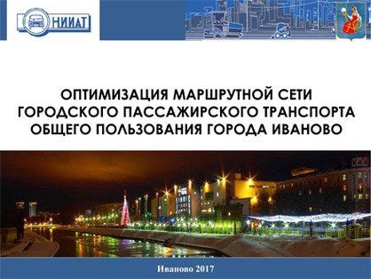 Результаты научно-исследовательской работы по оптимизации маршрутной сети города Иванова представлены в администрации областного центра. Проект выполнялся московским научным исследовательским институтом автомобильного транспорта в течение нескольких предыдущих месяцев. В результате предложена новая маршрутная сеть и рекомендации по типу подвижного состава.