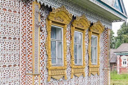 Дела снимки понравившихся окон, парень отметил популярность в Юже такого украшения деревянных домов, как «крыша червой».