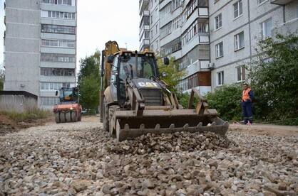 В настоящее время здесь работает тяжелая техника - укладывается щебень под будущую парковку автомобилей. В целом на этой придомовой территории запланированы ремонт дворовых проездов (195 кв. м), оборудование автомобильных парковок (983 кв. м), установка скамеек, оборудование детской и спортивной площадок (детский игровой комплекс, песочница, рукоход с брусьями, тренажер на фундаменте, стойки волейбольные, ворота гандбольные). Планируется и озеленение территории, в том числе устройство газонов общей площадью 1390 кв. м и посадка саженцев кустарников (боярышник, желтая акация, спирея и др.) в живую изгородь.