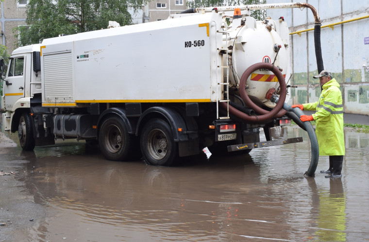 К выходу на маршруты готовятся три автоцистерны, оснащенные мощными вакуумными насосами. Они будут устранять застой дождевой воды, вызванного осадками.