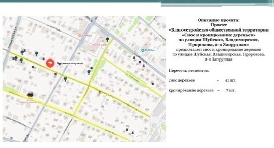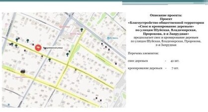 Однако, как отметила председатель ТОС "Владимирская горка" Ирина Дюзгункайа, старых разросшихся деревьев, создающих опасную ситуацию и неблагоприятный облик улиц, осталось еще много. Поэтому инициативные жители подготовили проект благоустройства, главная цель которого - снести или кронировать около 50 аварийных деревьев на общественных территориях - улицах Пророкова, Владимирской, Шуйской и 2-й Запрудной.