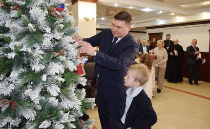 В мэрии новогоднюю ель украсили детскими этно-игрушками